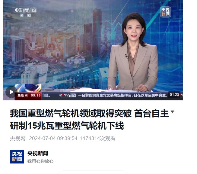 [央视网]我国重型燃气轮机领域取得突破 首台自主研制15兆瓦重型燃气轮机下线